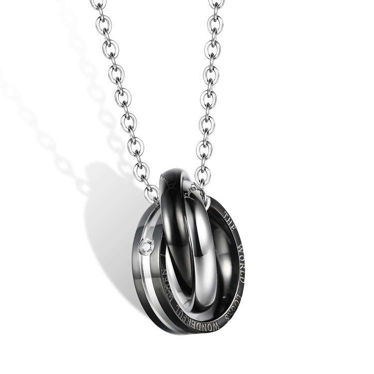 [小ぶり]トリプルリングペンダント メンズ 3連 ネックレス ステンレス ブラック トップ径20mm 送料無料