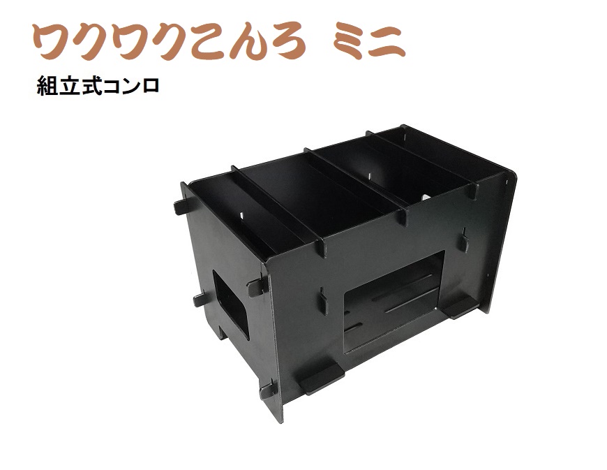 「ワクワク こんろミニ」組立式コンロ 兼 小型焚き火台 単品 収納袋付 奥行 121mm×横幅196mm×高さ117mm 【国産品】鉄板・ヘラは付いておりません