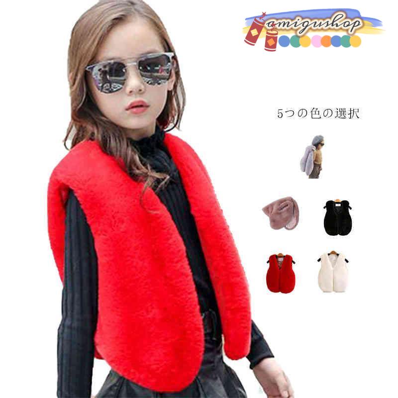 ファーカーディガン キッズ ファーベスト 女の子 前開き 無地 暖かいベスト ファー ベスト ノースリーブ 秋 冬 ジュニア フェイクファー