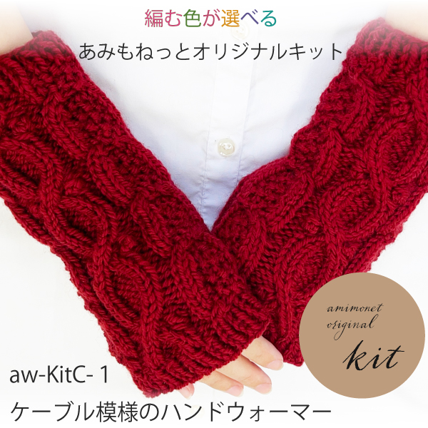 編み物キット aw-KitC-1 ケーブル模様のハンドウォーマー