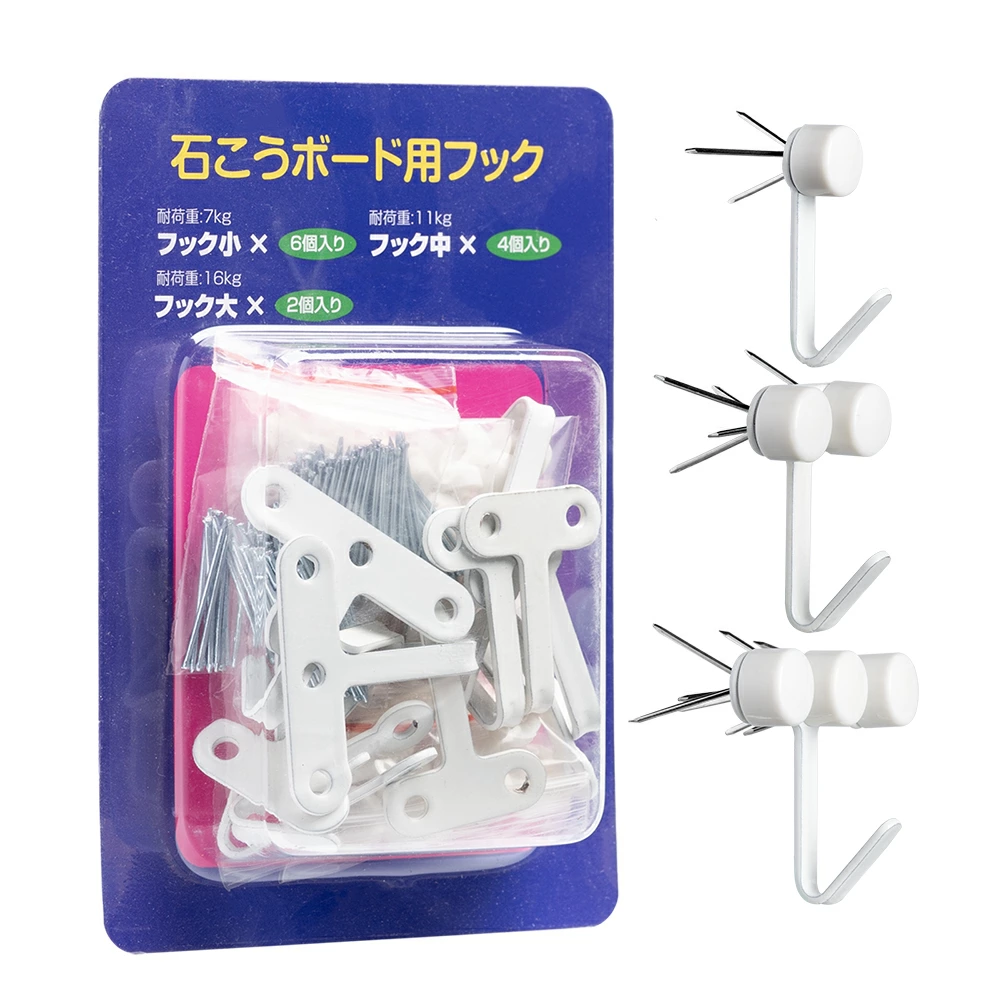 石膏ボード用(Jフック)として設計。極細2.5cmピンで奥までしっかり固定でき、時計・絵画・額縁など幅広く安定して掛けられます。