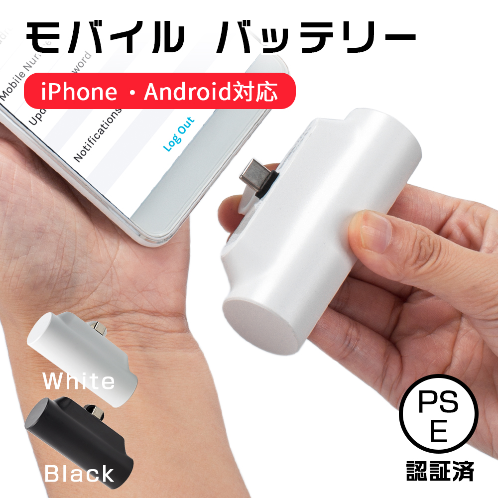 モバイルバッテリー PSE認証済 小型 軽量 ミニ かわいい コードレス Type-C Lightning 持ち運び便利 Android アンドロイド iphone対応 白 黒 おしゃれ 小さい