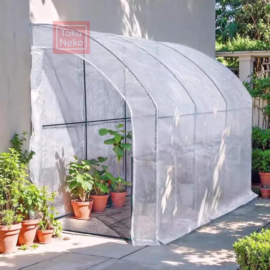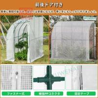 【成長スペースを提供でき】ビニールハウスカバーは、暖かく冷たい状態に保ち、寒い風から植物を保護するために、あなたの植物にとってより快適な空間を提供します。ドアカーテンに似たデザインを使用し、換気と日光暴露に便利なので、温室内の温度と湿度を調整し、植物の成長を助けるために適温を維持しています。