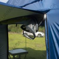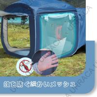 【ポップアップテント】:カーテントは車との連結部分を完全に閉じることができない場合が多いですが、デッドスペースが少ない構造のため、大容量かつ小型の設計となっており、大きな3面の窓にはメッシュスクリーンが付属し、虫の進入を防ぐとともに、風や美しい景色を楽しめます。