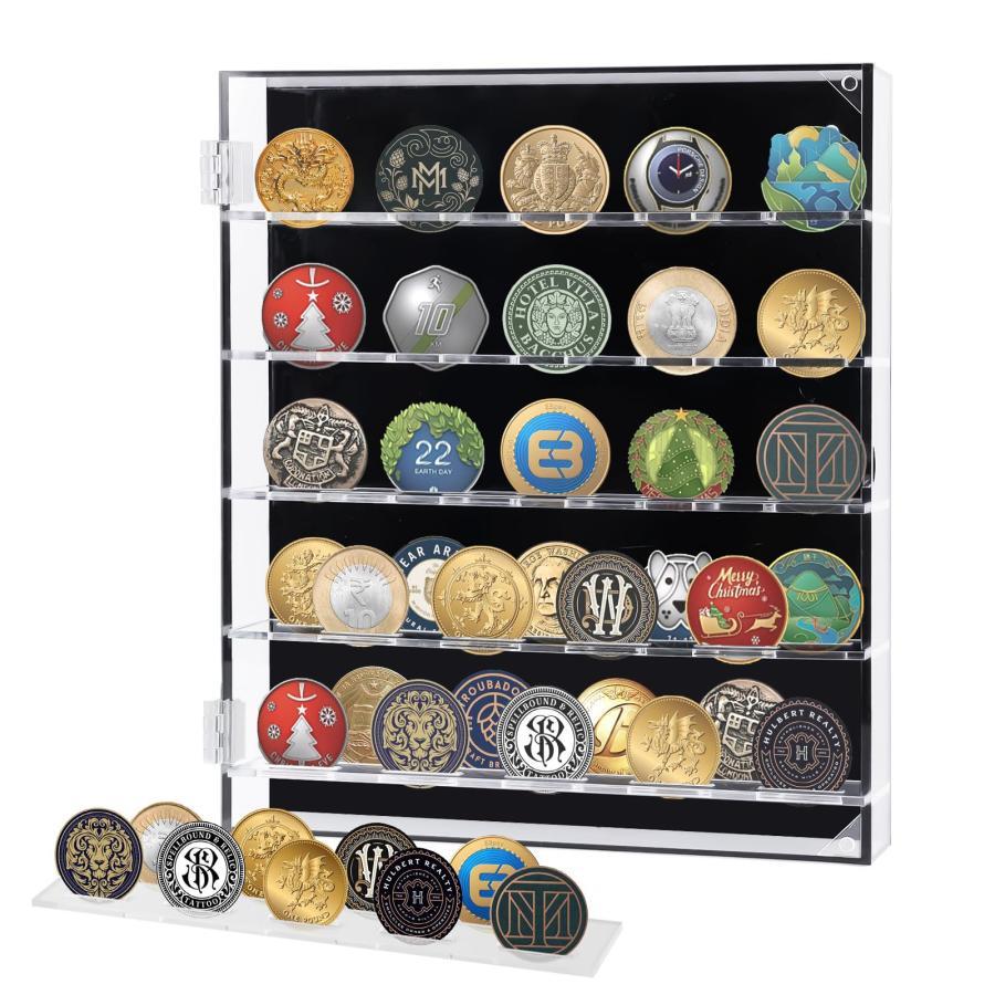 5列硬貨ショーケース、チャレンジコインディスプレイケース、アクリル硬貨スタンドショーケース、ロック可能キャビネットは45枚の硬貨を収容でき、メダル壁