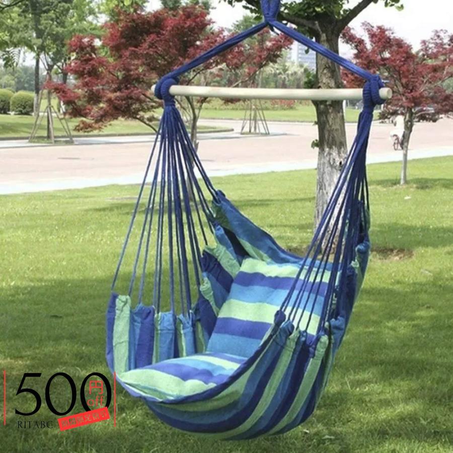 ハンモックチェア 吊り下げ ハンギングチェア ハンモック チェア 室内 屋外 キャンプ 折りたたみ クッション付き ハンギングスイングチェア (ストライプ)
