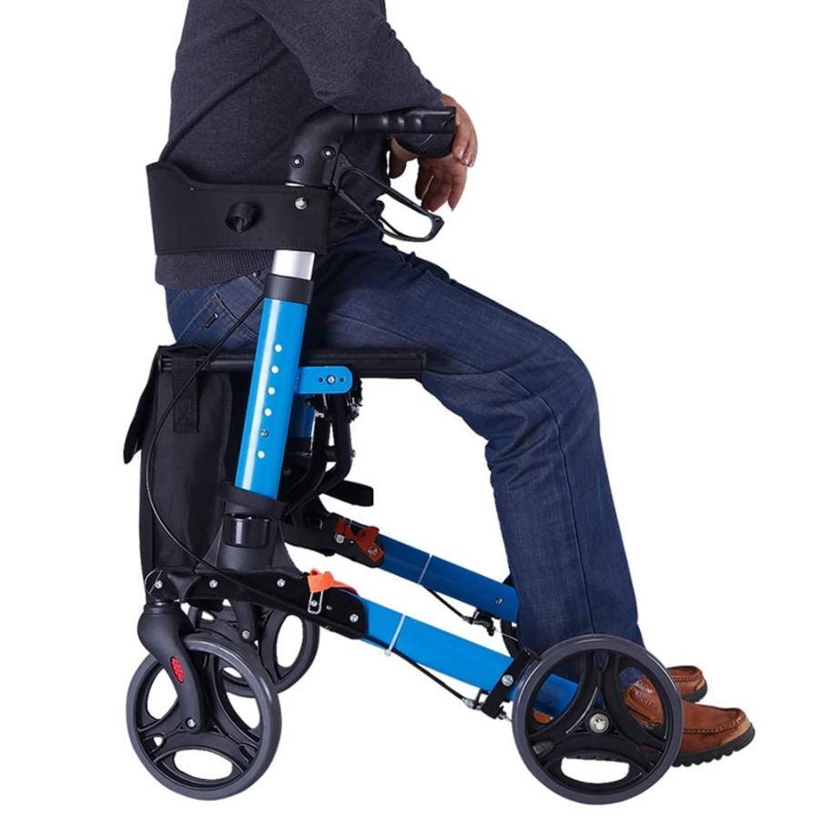 歩行器歩行車 高齢者と大人のための背の高い直立歩行器、 シートとバックサポート付き折りたたみ式歩行器、8インチホイール-ブルー