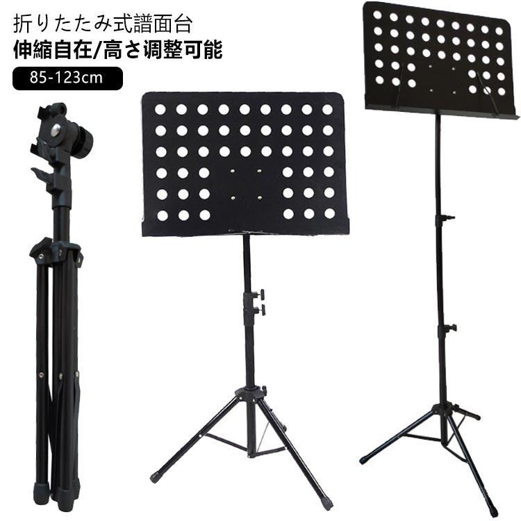 譜面台 折りたたみ 軽量 ミュージックスタンド 譜面立て 楽譜立て ケース 付き 高さ調節 角度調節 楽器 ギター 楽譜スタンド スチール 85-12