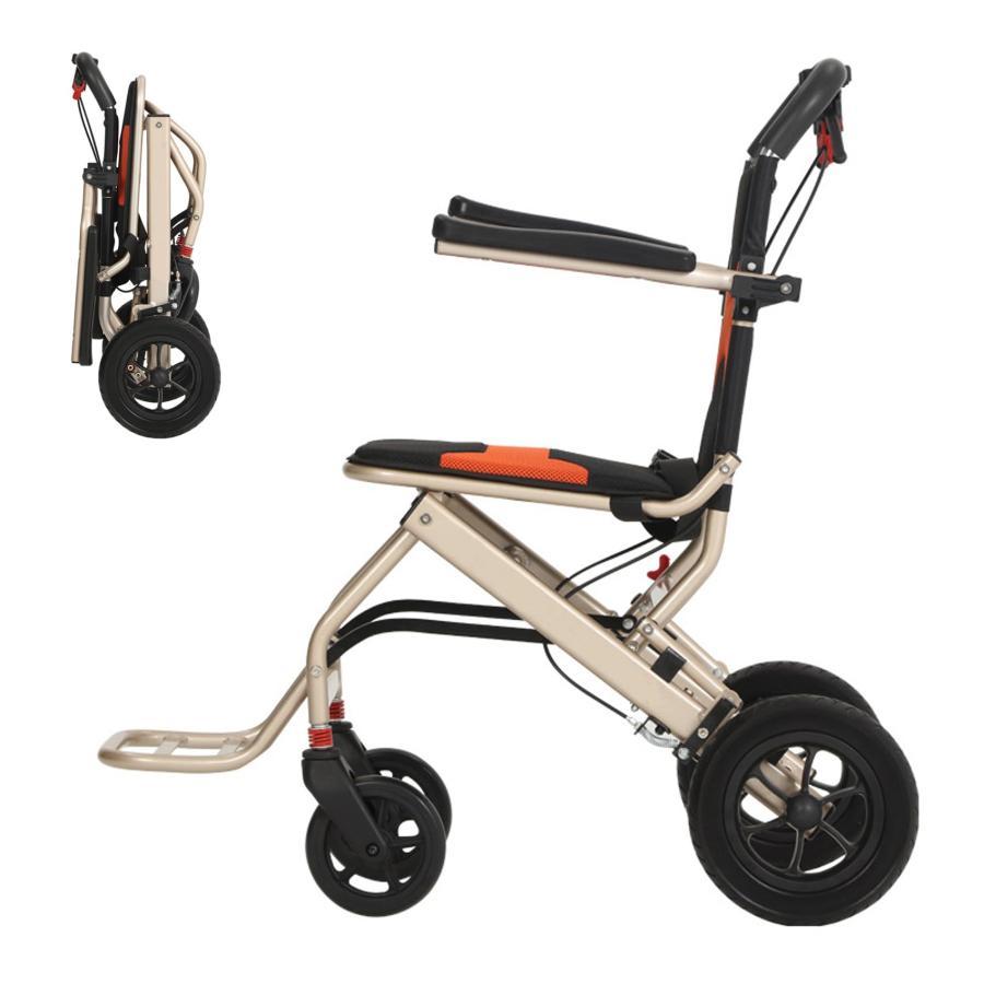 【旅行用軽量車椅子の利点ト】旅行用軽量車椅子自動車の衝撃吸収技術を使用して設計されており、路面からの衝撃を効果的に緩和し、安定した快適な乗り心地を実現します。安全な座面角度を作り、お尻への圧迫を軽減するために座面が約10°後ろに傾き、滑りにくく安全です。