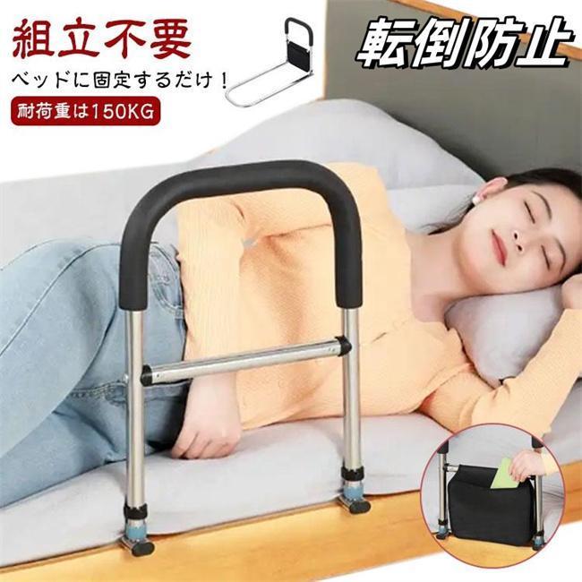 ベッドに固定するだけ!折りたたみ可能ベッド用手すり。【組立不要】【耐荷重は150KG】