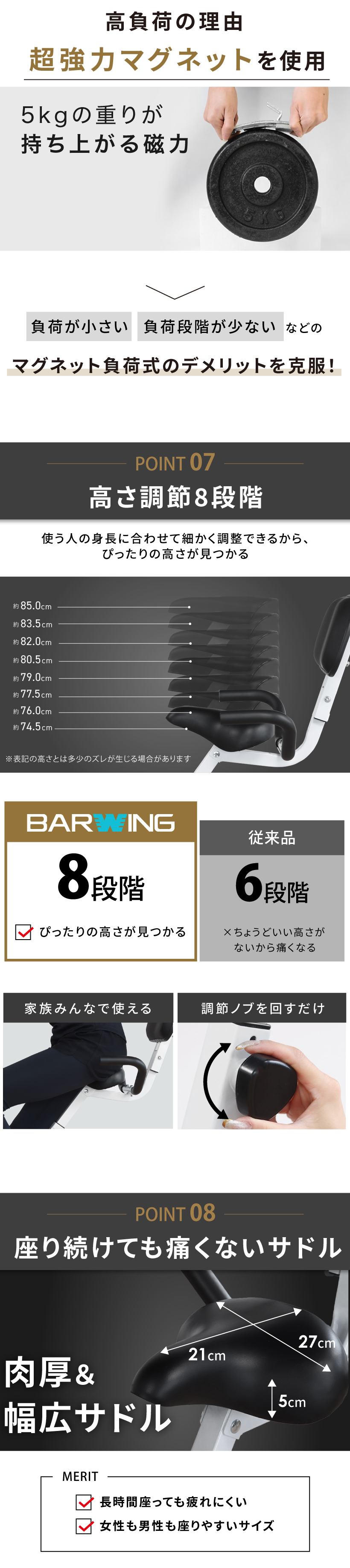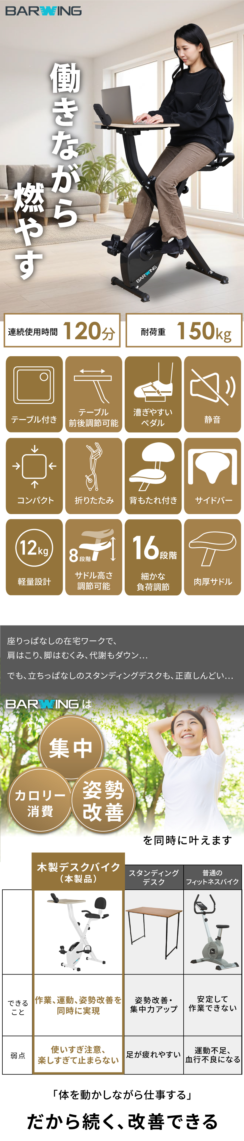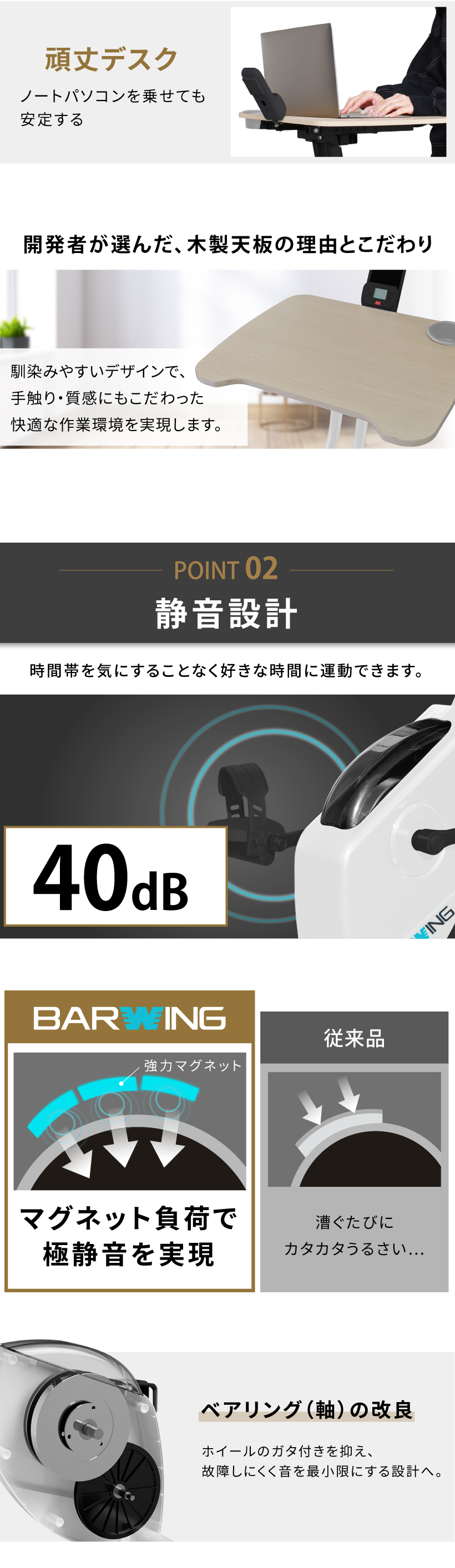 | 基本スペック | ・ワイドデスク付き ・負荷調節16段階 ・マグネット負荷式 ・静音 ・ストラップ付きペダル |