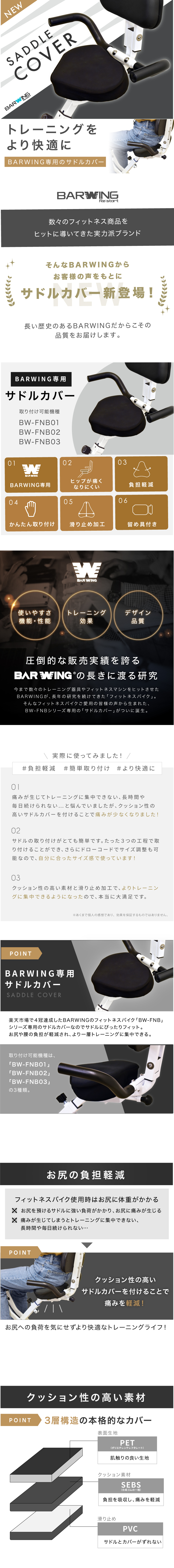 サドルカバー BARWING 専用 BW-FNB01 BW-FNB03 BW-FNB03 フィットネスバイク サドル 専用カバー トレーニングバイク エアロ バイク カバー クッション 自転車