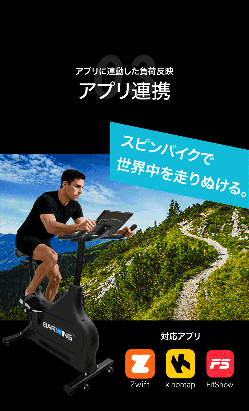 【1年保証】【自己発電 × 電動負荷調節】 スピンバイク アプリ連携 kinomap zwift フィットネスバイク 連続使用 180分 耐荷重 150kg エアロ バイクビクス