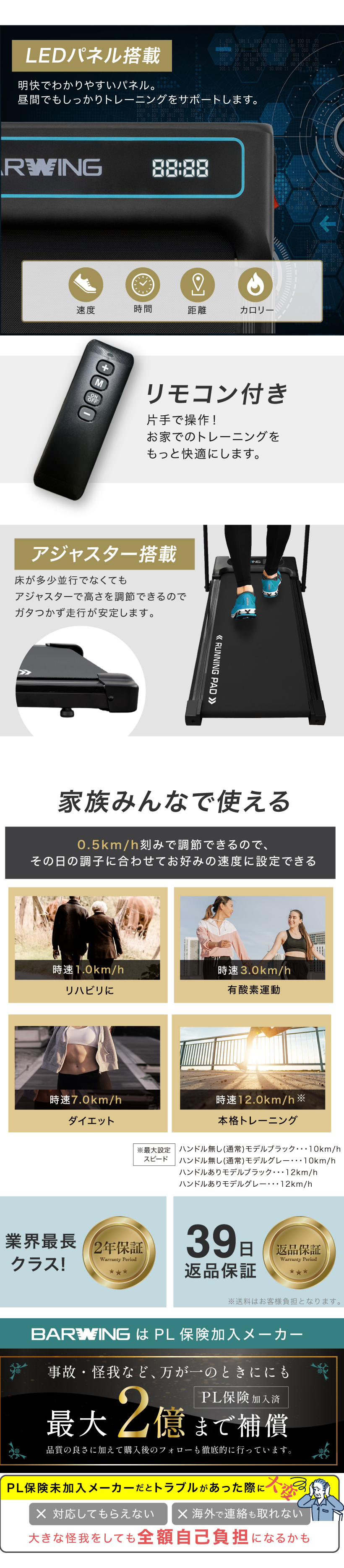 ★期間限定価格 4/1まで★ スマートウォーキング ルームランナー MAX12km/h ブラック ランニングマシン ウォーキングマシン