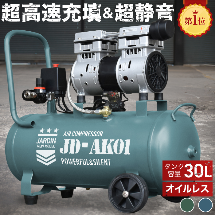 ★期間限定価格 10/16まで★ 【新カラー登場!】 エアーコンプレッサー 小型 車 30L 静音 ハイパワー 高速充填 オイルレス 0.8MPa 100V