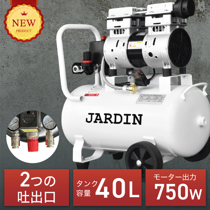 ★期間限定価格 10/16まで★ エアーコンプレッサー 吐出口2個 40L 車 エアコンプレッサー 静音 高速充填 オイルレス 大容量 0.8MPa 大口径 100V
