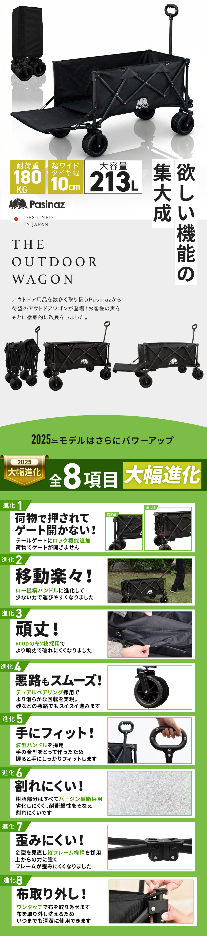 2023年NEWモデル アウトドアワゴン キャリーワゴン キャリーカート キャンプワゴン 折りたたみ 荷室拡張 4輪 伸縮ハンドル 頑丈 耐荷重180kg 大容量 144L タフ ワイドタイヤ タイヤロック 軽量 コンパクト 自立 アウトドアキャリー アウトドア キャンプ 大型 おしゃれ