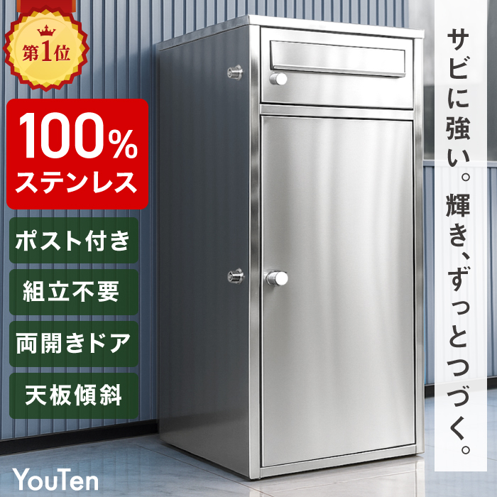 YouTen(ユーテン) 宅配ボックス 大容量 ポスト一体型 ステンレス 一戸建て用 ダイヤル錠 おしゃれ 防水 一体型 置き型 ポスト 大容量 スタンドポスト 宅配ポスト 郵便ポスト スタンドタイプ 屋外 モダン 北欧 ブラック 木目 ブラウン 一戸建て マンション 置き配 不在 防犯 ポスト置き型 ポスト モダン