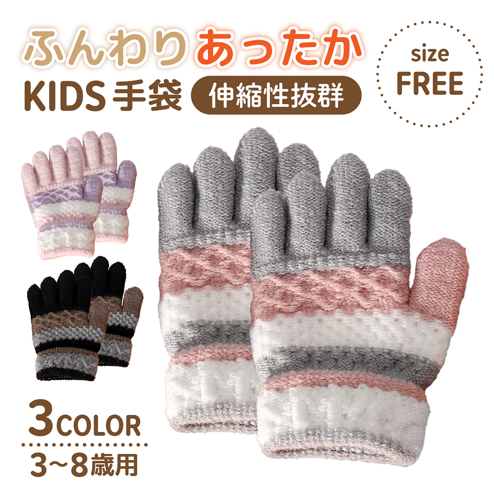 手袋 てぶくろ グローブ 5本指 ニット 子供 キッズ 女の子 男の子 男女兼用 秋 冬 お揃い カジュアル ゆったり 通園 通学 防寒 防風 ふわふわ