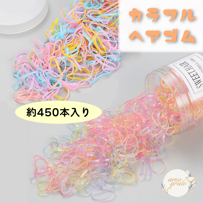 ヘアゴム カラーゴム 髪ゴム ヘアーアクセサリー 髪飾り 使い捨て 絡まない 子供 キッズ 女の子 プリンセス 可愛い 飾り 小さい 透明 カラフル オシャレ