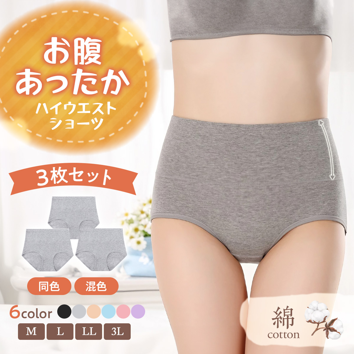 ハイウエストショーツ 3枚セット 綿 深め レディース ショーツ すっぽりショーツ 美尻 下着 女性用 パンツ
