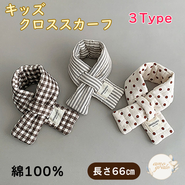 スカーフ クロススカーフ マフラー キッズスカーフ キッズマフラー 子供用マフラー 通すだけ 幼児 通し穴付き 通し穴 子供