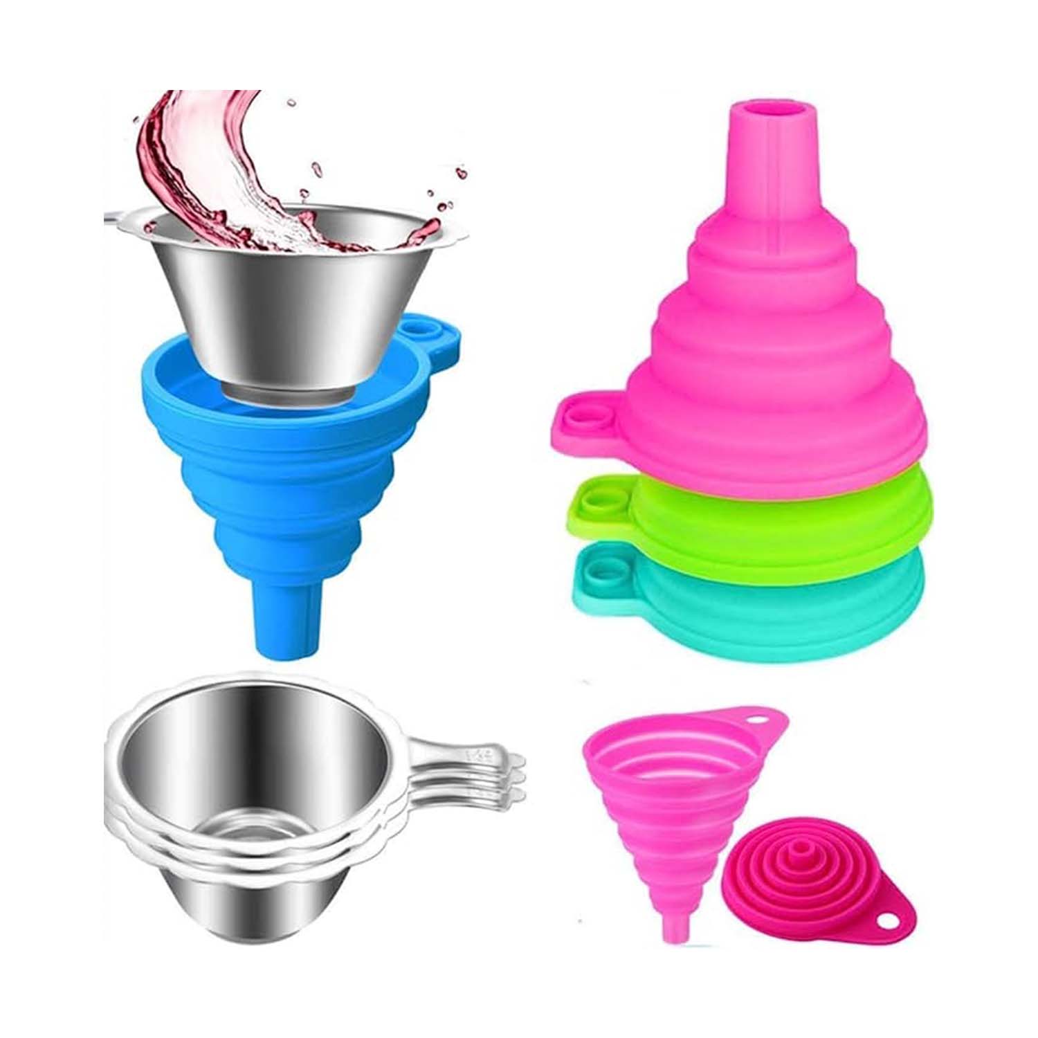 ・ 「幅広い用途」 ミルク、ジュース、消毒剤、シャンプーなどの注入に適しています。折りたたみ式シリコン漏斗は、ご家庭のキッチン、バスルーム、アウトドア旅行、車のメンテナンスに最適です。
