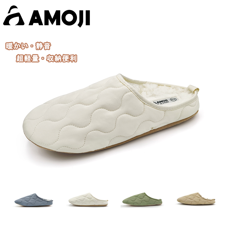 「サイズ交換無料」AMOJI アモジ ルームシューズ メンズ レディース スリッパ 暖かい 冬 静音 軽い ボアサンダル ダウン ふわふわ 柔らか 室内履き 来客用 防寒