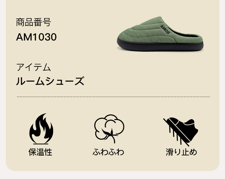 アモジのスリッパは、寒い季節にぴったりの室内履きです。
