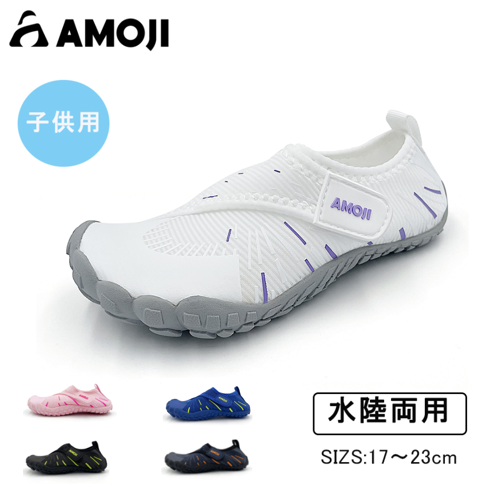 「サイズ交換無料」AMOJI アモジ マリンシューズ キッズ 子供 ビーチシューズ 水陸両用 マジックテープ 女の子 男の子 排水機能アクアシューズ ベビー