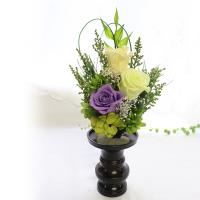 喪中見舞い プリザーブドフラワー 仏花 ミニ 仏壇用 お供え ブリザーブド 造花 お悔やみ 贈答用 モダン 一対対応 仏壇 器なし 初盆 お供え 「結月」