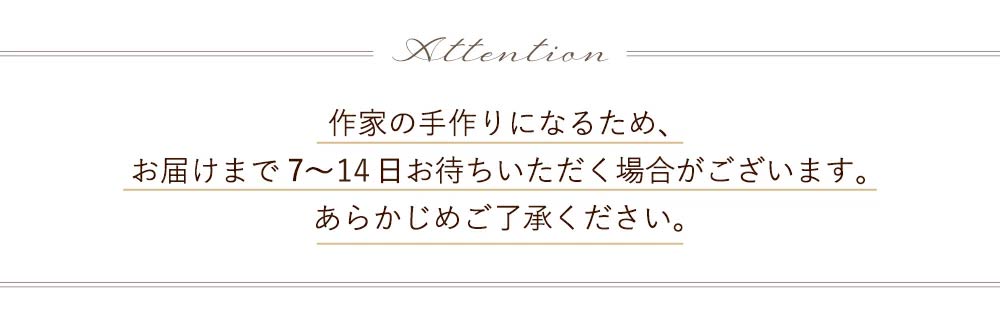 ※作家の手作りになるため、お届けまで7〜14日程度お待ちいただく場合がございます。あらかじめご了承ください。