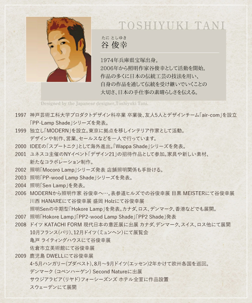 照明作家 谷俊幸によってデザインされた「Hanabi」シリーズは日本の伝統工芸である曲げわっぱの技法を用い、視覚と嗅覚を刺激し感覚を動かす照明。