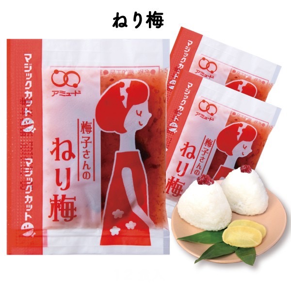 | 原材料 | 梅肉(梅(中国)、食塩)、りんごピューレ、醸造酢、砂糖、発酵調味料、かつお削りぶし、かつお節エキス、しそ塩漬け/調味料(アミノ酸等)、酸味料、酒精、野菜色素、増粘多糖類、(一部にりんごを含む) |