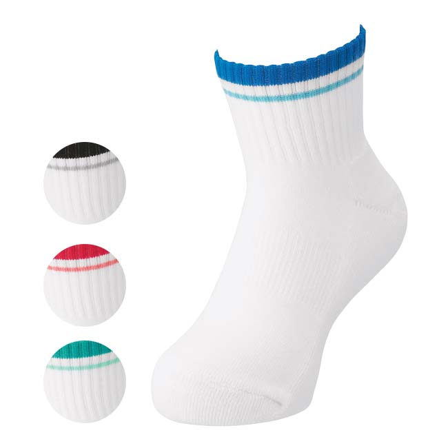 | 仕様 | 繊維上の菌の増殖や臭いを抑え、清潔に保つ抗菌防臭機能アンクルソックス。シンプルなデザインが特徴です。 ・足首背面にメーカーロゴ ・かかとを90度にカッティングすることで、足首のゆるみ、かかとのズレを解消 ・防菌防臭加工により、繊維上の菌の増殖や臭いを抑え、清潔にキープ ・足族パイル |