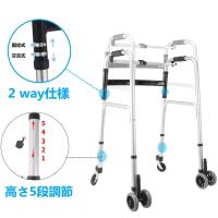 歩行補助具 折りたたみ式 歩行具 大人軽量 歩行車 高齢者用 高さ5段調節 軽量アルミ製 前後キャスター付き介護用品 大人の歩行器 室内 室外