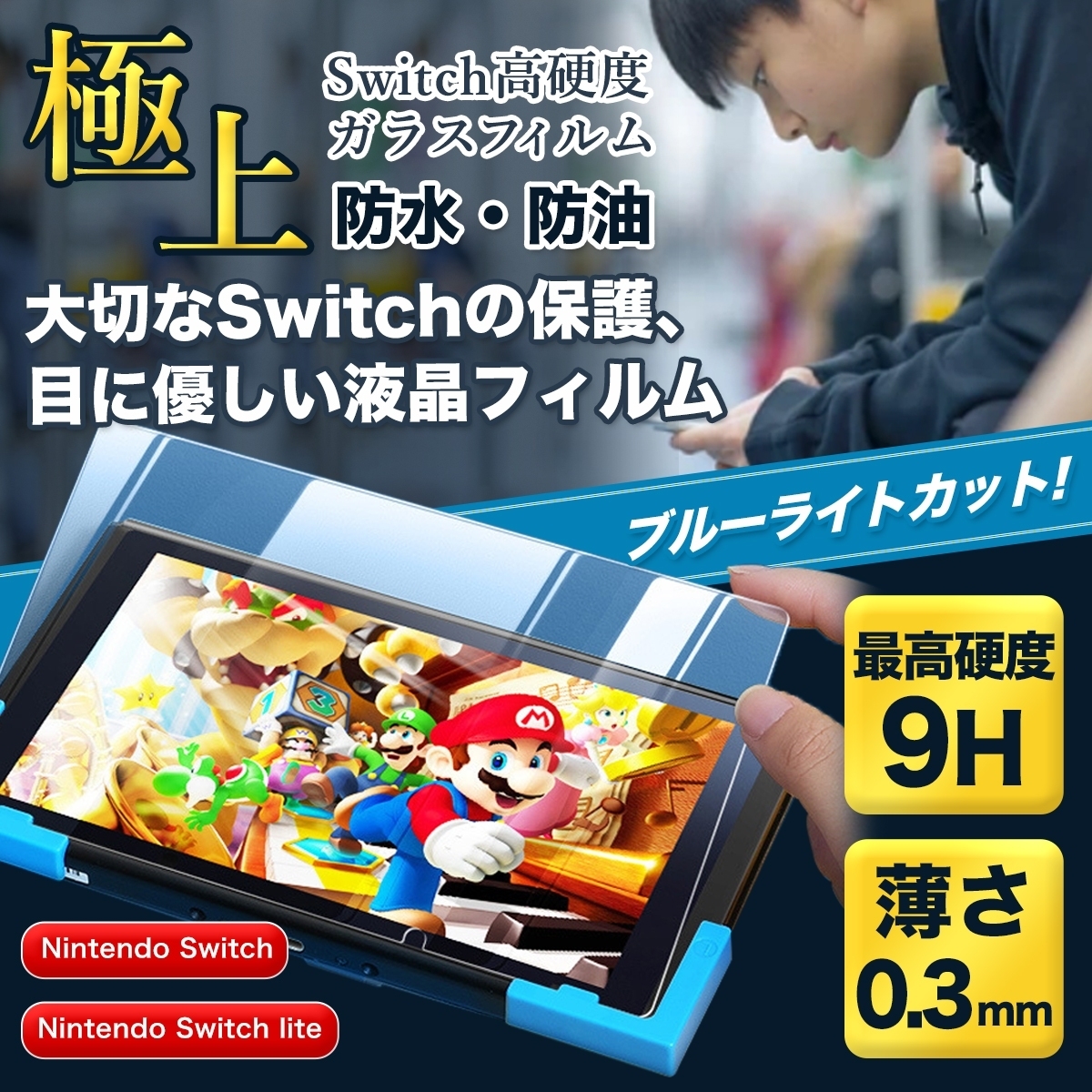 Switch フィルム 画面保護シート ブルーライトカット 液晶保護 9H強化ガラスフィルム ニンテンドースイッチライト 任天堂
