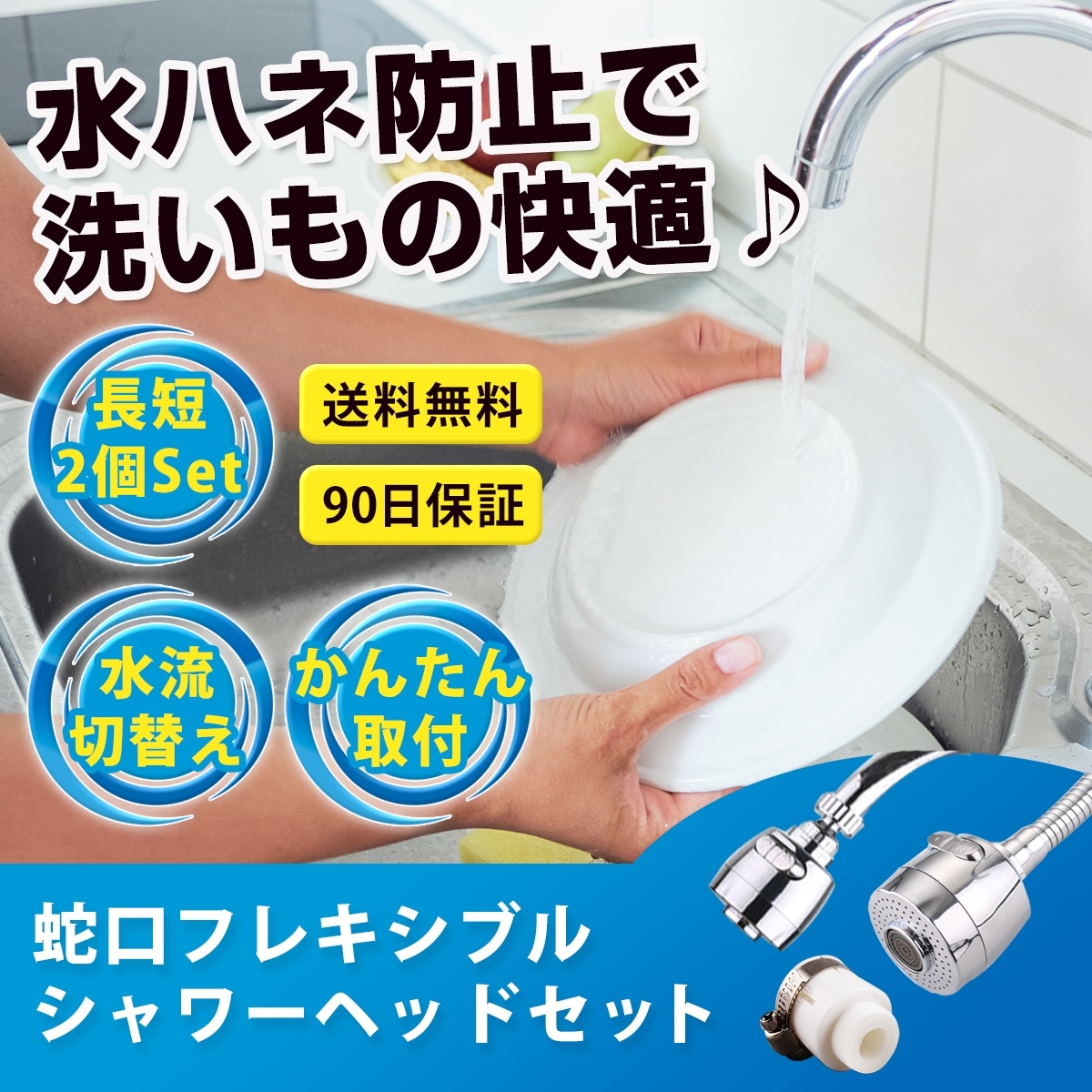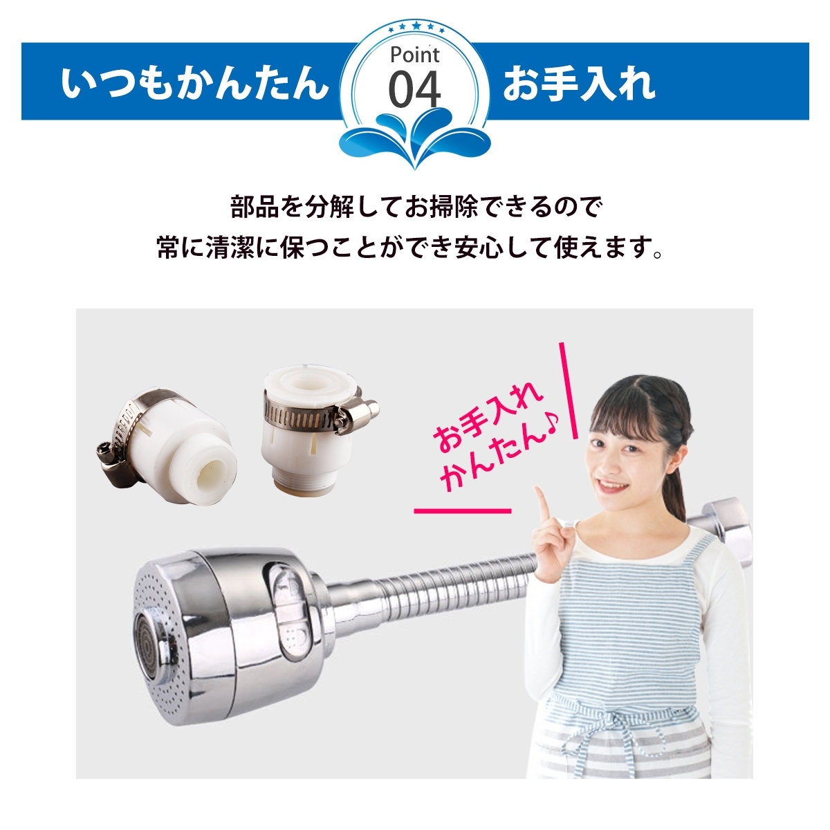 簡単かつスピーディーに取り付けでき、キッチン・洗面台・浴室の蛇口などでの作業が快適に。