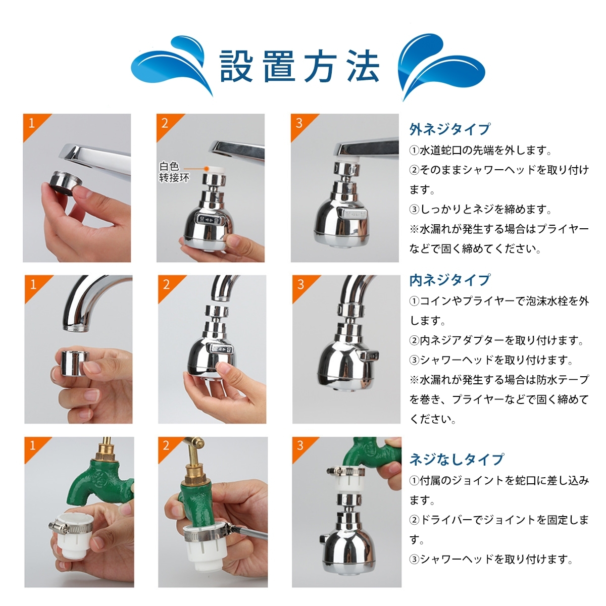 蛇口 シャワー シャワーヘッド 首振り キッチン 交換 切替 水ハネ 防止 取り付け 節水 水漏れ 蛇口の種類