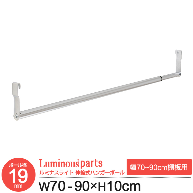 ・こちらの商品はポール部の伸縮調整によりルミナス ポール径19mmワイヤーシェルフ69.5cm〜89.5cmのサイズに対応しています。