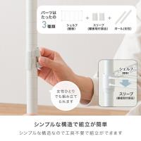 | 材質 【スチールシェルフ・ポール】スチール(粉体塗装) 【スリーブ・アジャスタ】ABS樹脂 | |