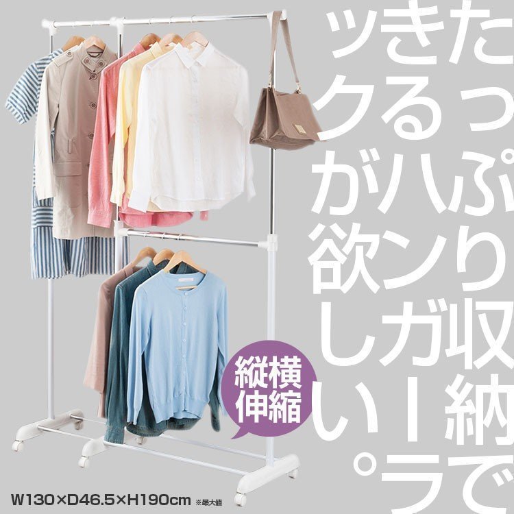 ハンガーラック 幅90 幅130 2段 スリム 省スペース 頑丈 キャスター付き おしゃれ コートハンガー 大容量 コンパクト 衣類 コート掛け 洋服 gth-130wh