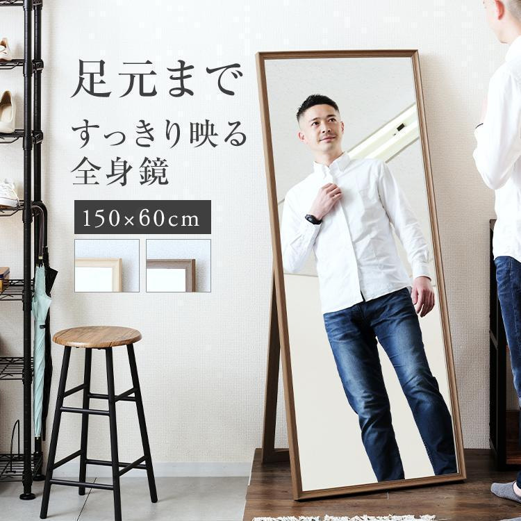 スタンドミラー 全身鏡 姿見 おしゃれ 高身長 全身 幅60 ミラー 高さ150 鏡 大型 コンパクト ワイド 飛散防止 木目 大きい 木製 北欧 玄関 姿見鏡 IMS1560