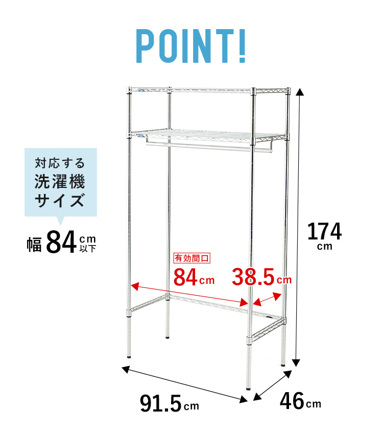 | 商品名 | 洗濯機ラック 幅90タイプ 2段 高さ174 |