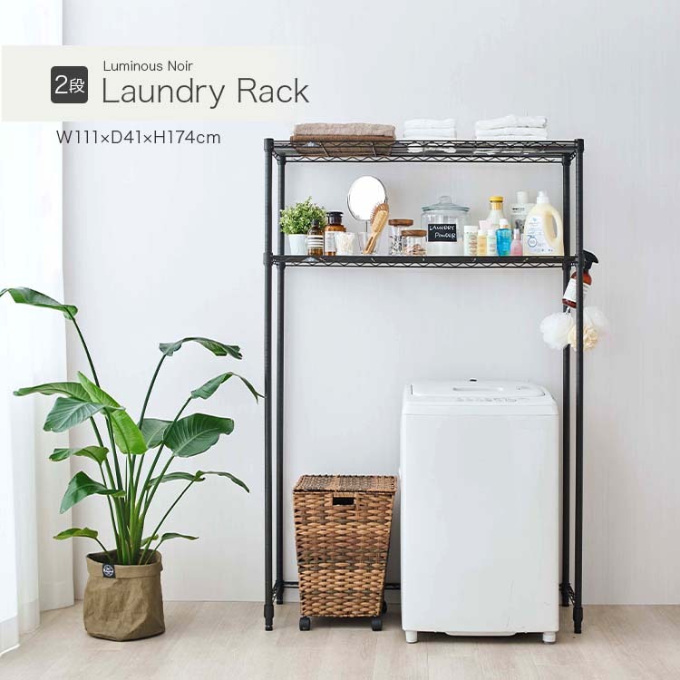 ランドリーラック 洗濯機ラック 幅110 2段 洗濯機上収納 縦型 ドラム式 スリム ランドリー収納 奥行40 ランドリー収納 ルミナスノワール NO114018-NOKWB