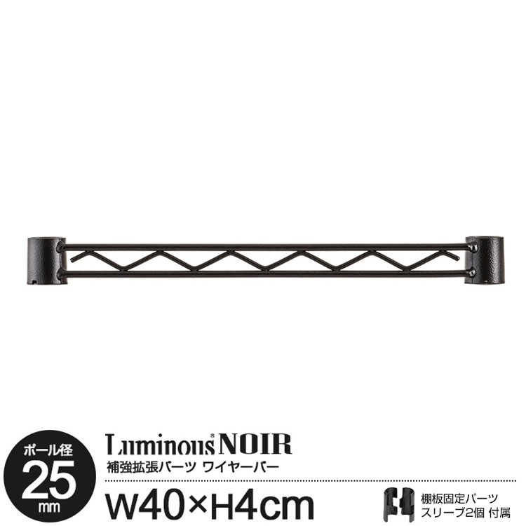 ラック パーツ ワイヤーバー 補強パーツ 幅40 ポール径25mm ルミナス ノワール スチールラック カラーラック ゴミ箱上 収納 落下防止 幅41 高さ4cm NO25WB040