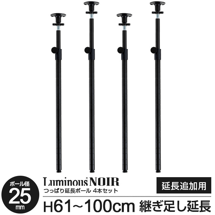 ラック パーツ ポール 突っ張り 延長ポール 高さ60〜100cm ルミナス ノワール ポール径25mm つっぱり 地震対策 テンション 長さ62〜100cm延長 NOADD-P60J