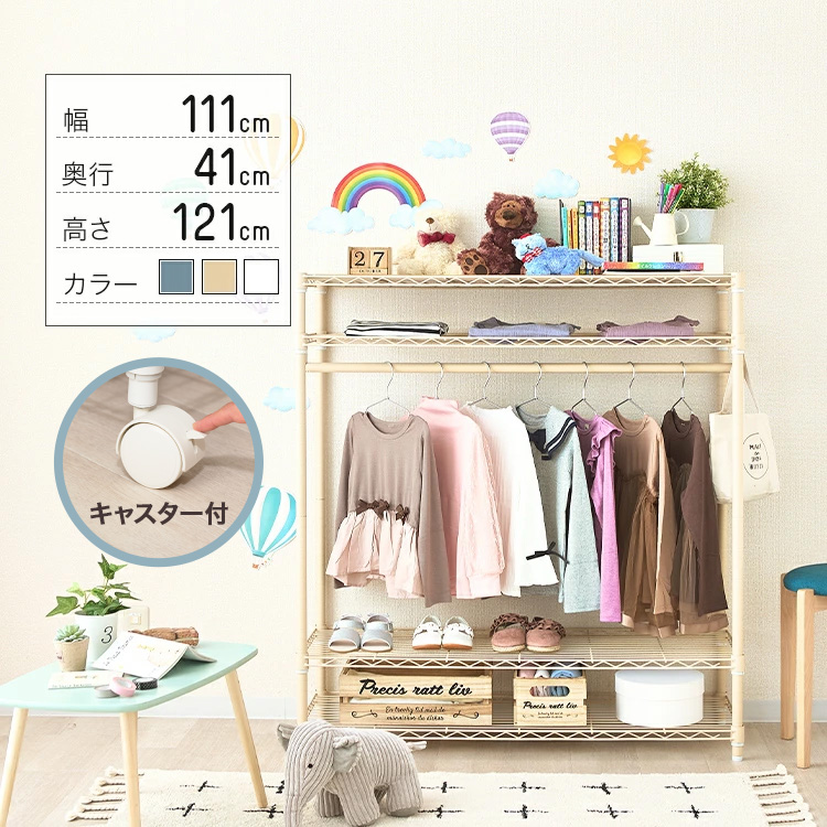 | サイズ(約) [アジャスター(固定脚)取付時]幅111×奥行41×高さ121cm [キャスター取付時]幅111×奥行41×高さ125.5cm [内寸]幅103.5×奥行33.5cm | |