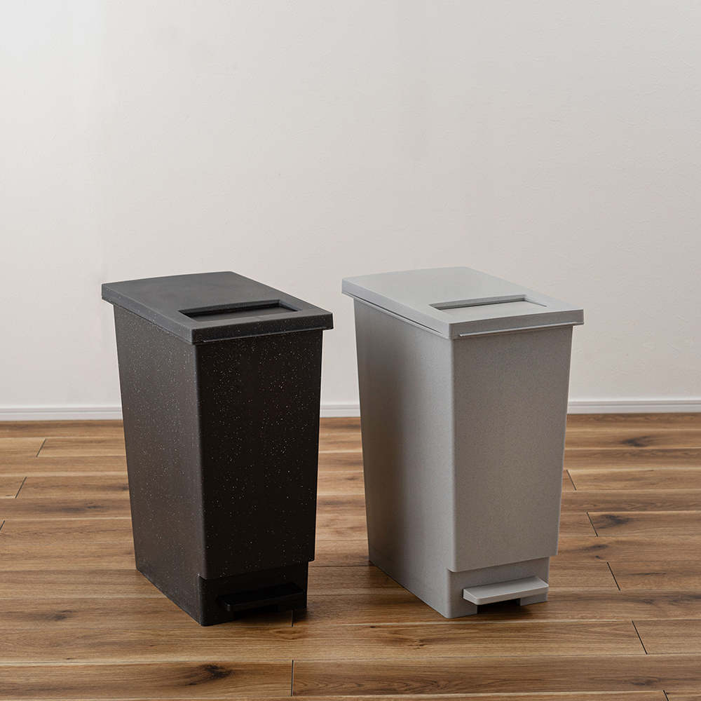 上からプッシュ&足元ペダルの2種類の開け方ができるゴミ箱。ゴミの大きさや状況に応じてマルチに活躍します。
