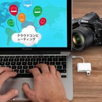 「USB Type C SDカードリーダー」本製品はUSB C ポート搭載のデバイスに向け、TF、SD、USB2.0総計三つのポートを搭載したカードリーダー。14MB / S〜18MB / Sのて高速転送速度、最大64Gb SD / TFカードをサポート。簡単にUSB Cデバイスにデータを移動でき、いつでも家族や友人にビデオ・写真をシェアする事が可能。